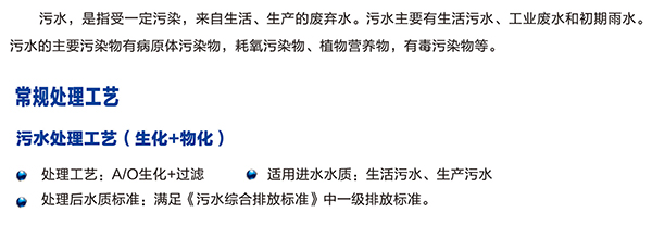 污水,是只收一定污染,來(lái)自生活、生產(chǎn)的廢棄誰(shuí)。污水主要有生活污水、工業(yè)廢水和初期雨水。污水的主要污染物有病原體污染物,耗氧污染物、植物營(yíng)養(yǎng)物,有毒污染物等。