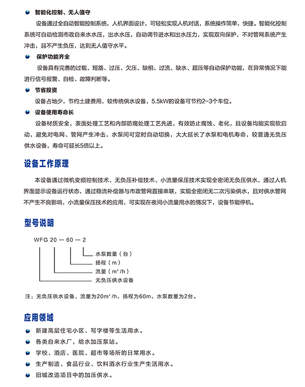 無負(fù)壓供水設(shè)備是集自動控制技術(shù)、微電子控制技術(shù)、無負(fù)壓補(bǔ)償技術(shù)鄧關(guān)鍵技術(shù)于一體的新型供水設(shè)備,它以市政自來水管網(wǎng)為水源,充分利用市政自來水管網(wǎng)的壓力,實(shí)現(xiàn)密閉連續(xù)的接力增壓供水,節(jié)能環(huán)保,沒有水質(zhì)的二次污染,是變頻恒壓技術(shù)的發(fā)展與延伸,是供水技術(shù)的二次革命。
